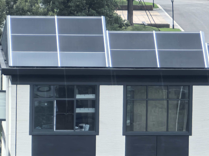 建筑应用 BIPV 光伏屋顶与储能系统,日均发电 30 度满足自用;