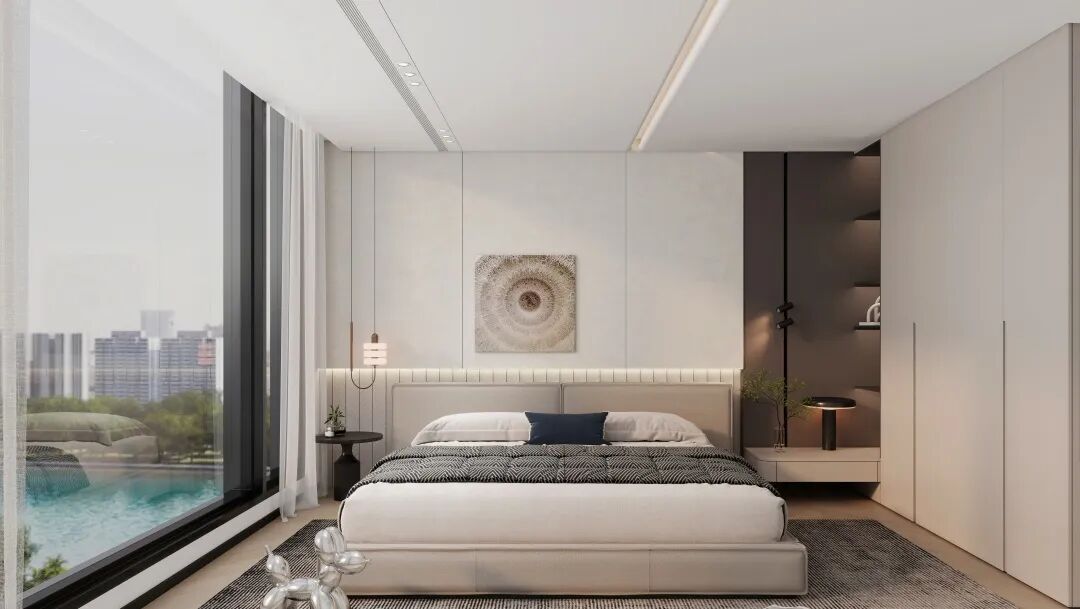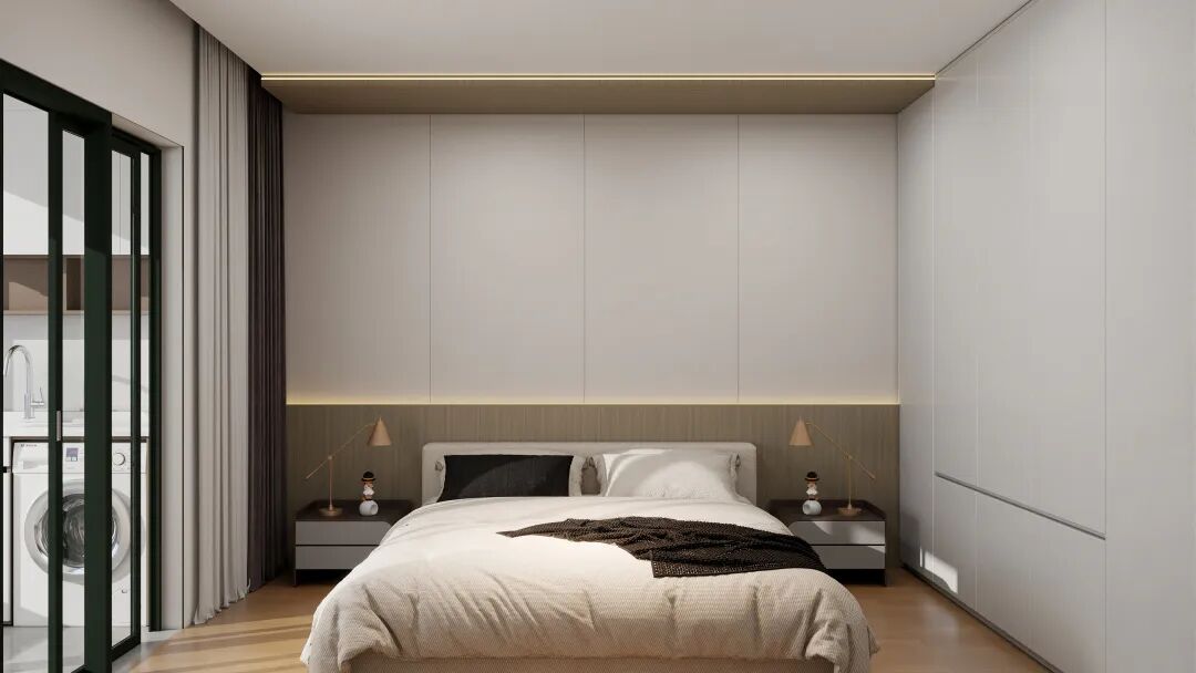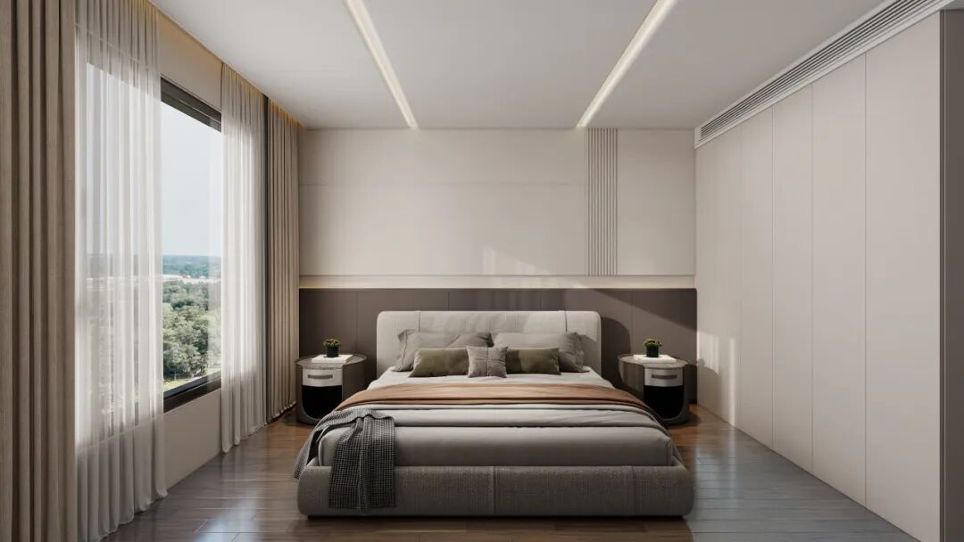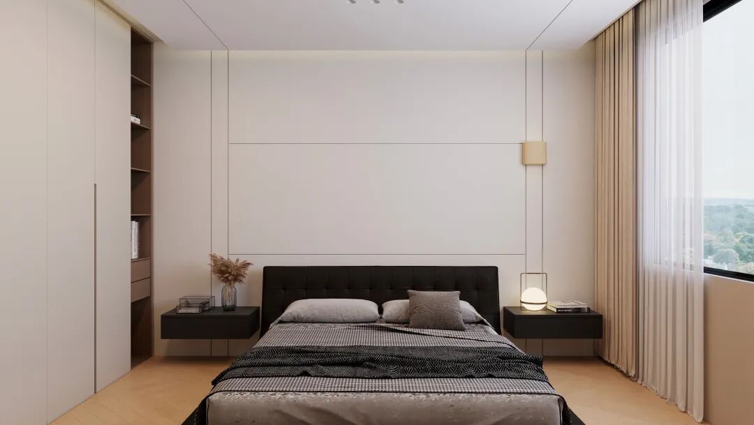 8㎡网红背景墙 + 12㎡晶瓷大板:柔和质感+简约线条,轻松造出卧室 “氛围感 C 位”。