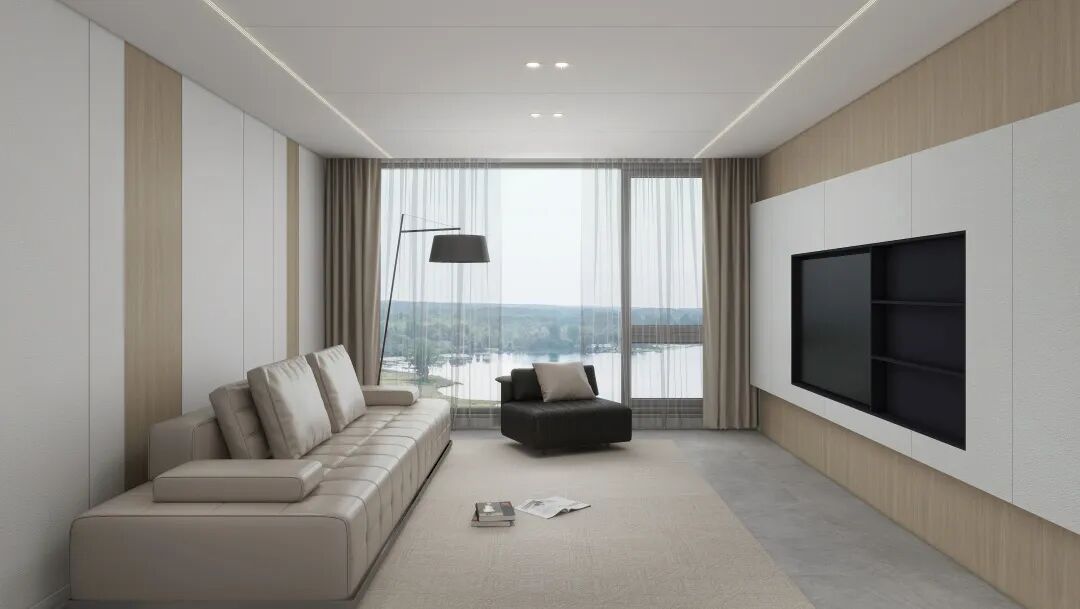 ENF级环保墙面,布拉格橡木、皮纹灰质感纹理,搭配暗藏灯带,轻松造出客厅 “颜值 C 位”。
