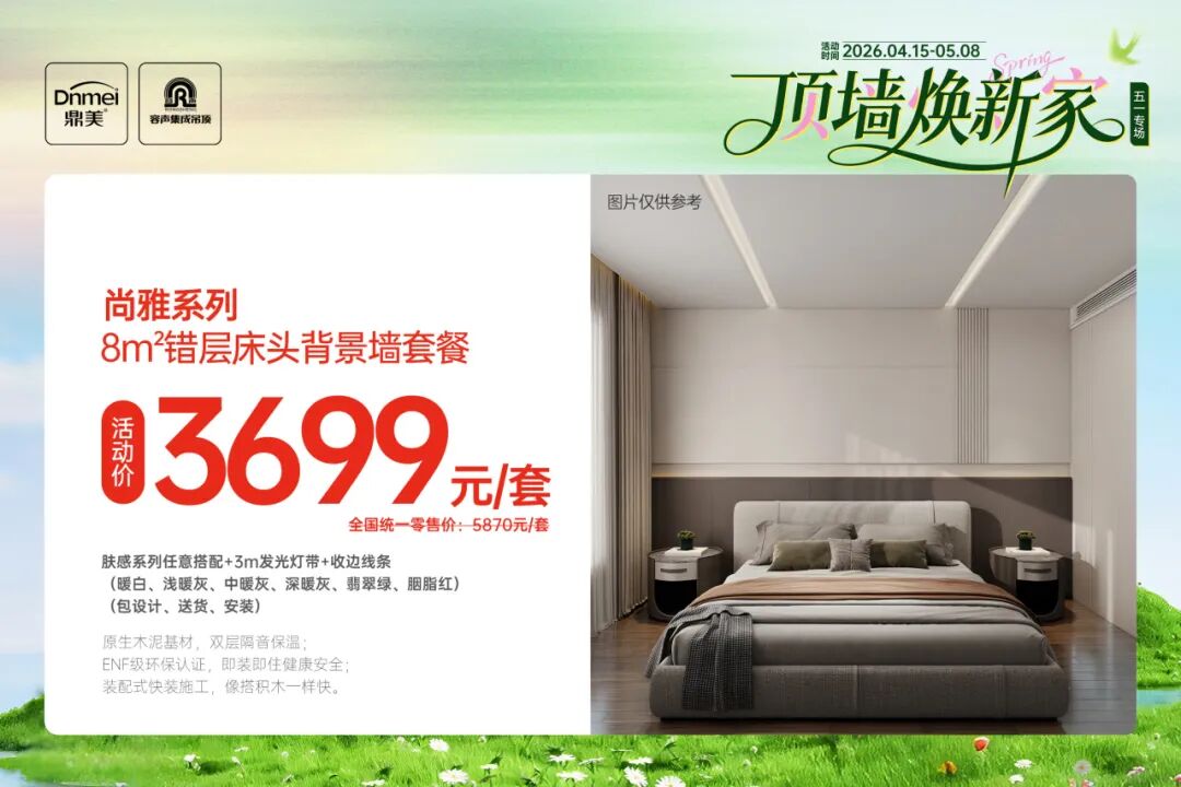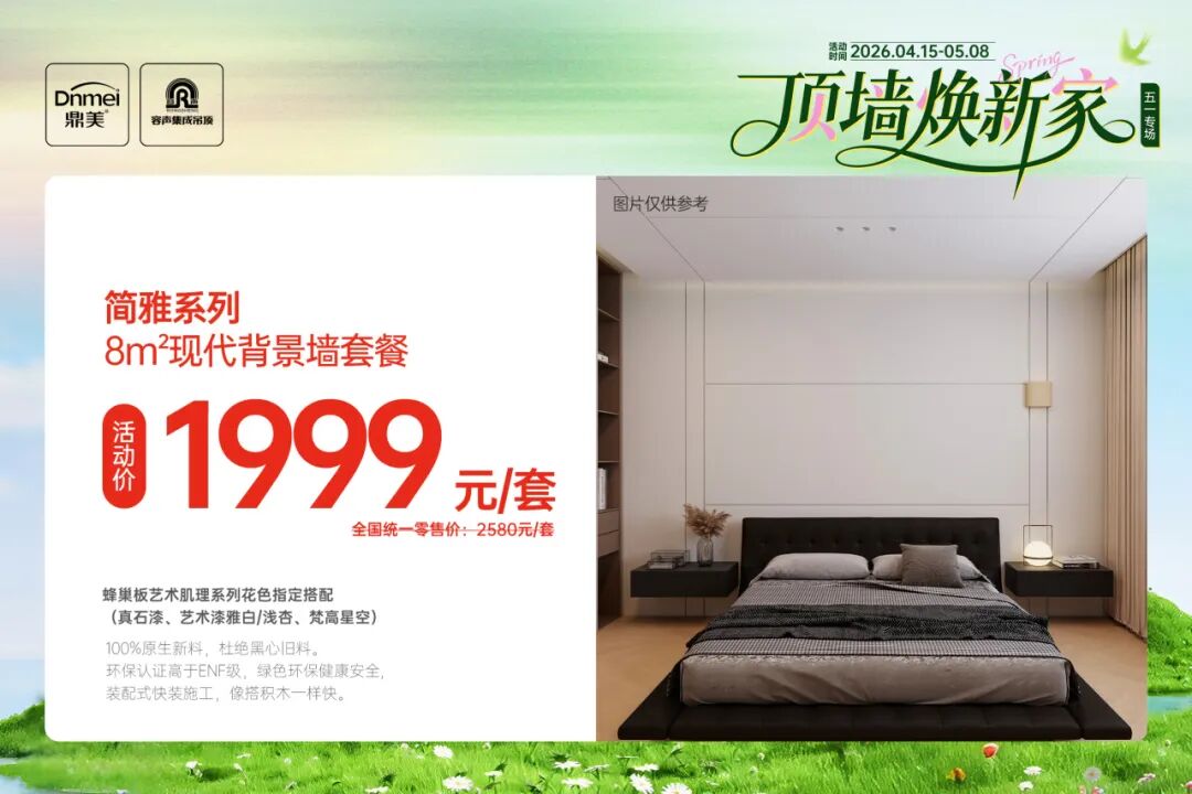 鼎美五一背景墙双套餐,焕新卧室氛围感。特选蜂巢板与原香木肤感系列基材,ENF级环保,自带自然气息,多风格设计,无论新装或旧改都能完美驾驭。