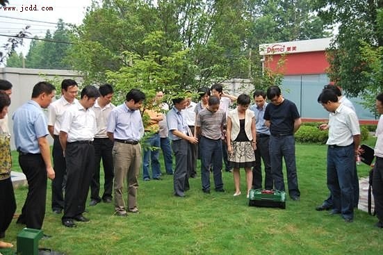 代表团观看具有行业先进水平的割草机器人工作